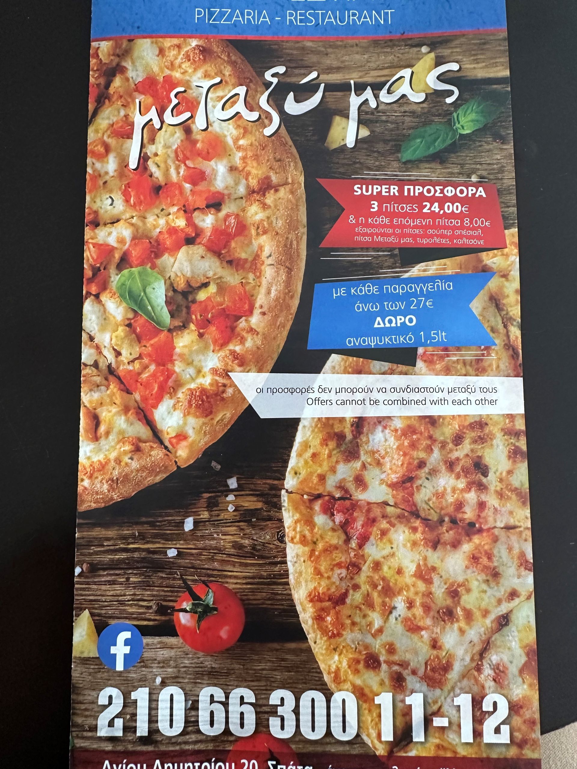 Δείτε παρακάτω αναλυτικά το μενού και τις προσφορές που παρέχει η πιτσαρία-εστιατόριο